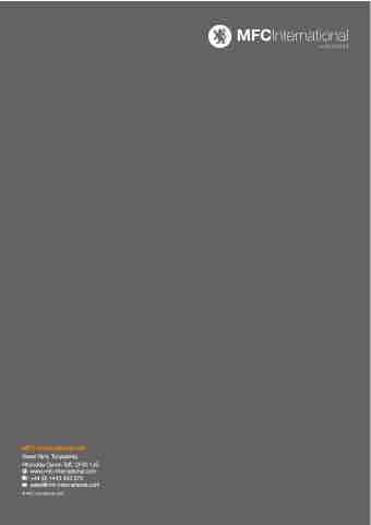 MFC International Ltd Naval Yard, Tonypandy, Rhondda Cynon Taff, CF40 1JS : www.mfc-international.com : +44 (0) 1443 433 075 : sales@mfc-international.com © MFC International 2022