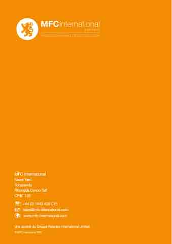 MFC International Naval Yard Tonypandy Rhondda Cynon Taff CF40 1JS ': +44 (0) 1443 433 075 : sales@mfc-international.com : www.mfc-international.com Une société du Groupe Respirex International Limited © MFC International 2022