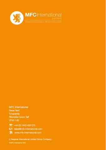 MFC International Naval Yard Tonypandy Rhondda Cynon Taff CF40 1JS ': +44 (0) 1443 433 075 : sales@mfc-international.com : www.mfc-international.com A Respirex International Limited Group Company © MFC International 2022