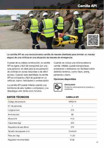 La camilla API es una revolucionaria camilla de rescate diseñada para brindar un manejo seguro de una víctima en una situación de rescate de emergencia.