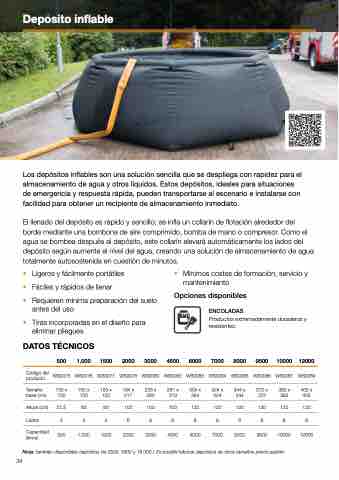 Los depósitos inflables son una solución sencilla que se despliega con rapidez para el almacenamiento de agua y otros líquidos. Estos depósitos, ideales para situaciones de emergencia y respuesta rápida, pueden transportarse al escenario e instalarse con facilidad para obtener un recipiente de almacenamiento inmediato.